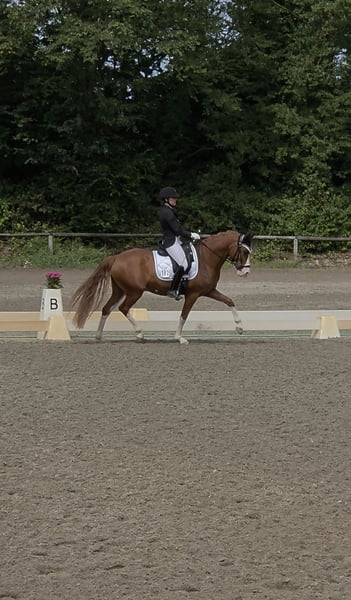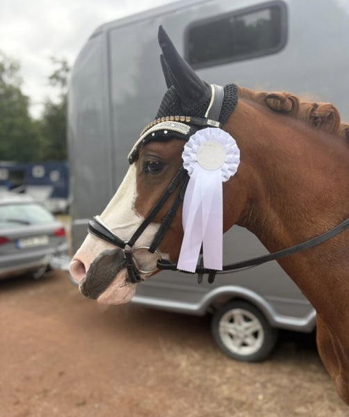 Charming German Riding Pony in Special Coat Color. Fs Next Diamond x Constantin For sale is a beautiful 4-year-old German Riding Pony in an attractive special coat color. With a height of 145 cm, this pony is the ideal partner for small riders. - Successful in dressage competitions at A level against large horses with a score of up to 8.2! - Super well-behaved and reliable, both in training and at competitions. - A little charmer that is sure to attract all the attention! - Impresses with good basic gaits that are excellent for dressage work. This pony has the potential to be a loyal companion for sporting challenges and at the same time a loving friend for its rider. Interested? Please feel free to contact us for more information. Let yourself be enchanted by this little charmer!