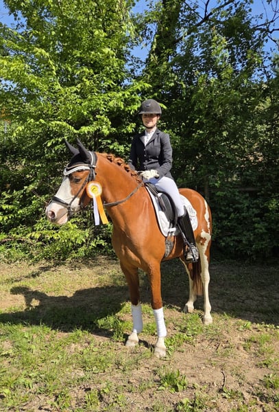Charmantes Deutsches Reitpony in Sonderlackierung. Fs Next Diamond x Constantin Zum Verkauf steht ein wunderschönes 4-jähriges Deutsches Reitpony in attraktiver Sonderlackierung. Mit einem Stockmaß von 145 cm ist dieses Pony der ideale Partner für kleine Reiter und Reiterinnen. - Dressurpferde A siegreich gegen Großpferde bis zur Wertnote von 8,2! - Super brav und zuverlässig, sowohl im Training als auch auf dem Turnier. - Ein kleiner Charmeur, der garantiert alle Blicke auf sich zieht! - Überzeugt mit guten Grundgangarten, die für die Dressurarbeit hervorragend geeignet sind. Dieses Pony hat das Potenzial, ein treuer Begleiter für sportliche Herausforderungen und zugleich ein liebevoller Freund für seine Reiterin oder seinen Reiter zu sein. Interesse geweckt? Kontaktieren Sie uns gerne für weitere Informationen. Lassen Sie sich von diesem kleinen Charmeur begeistern!