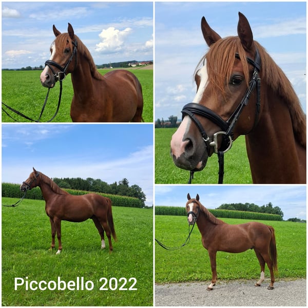 Piccobello Piccobello ist ein 4-jähriger österreichischer Reitpony-Wallach und steht zum Verkauf. Geboren im Jahr 2022, beeindruckt er nicht nur durch seine Erscheinung mit seinem dunklen Fuchsfell, sondern auch durch seinen außergewöhnlich ruhigen und zutraulichen Charakter. Er hat ein Stockmaß von 146 cm. Er war bereits auf Championaten unterwegs: Landes- und Bundesfohlenchampionat, als 2-Jähriger und 3-Jähriger beim Freispringchampionat. Er ist sehr brav beim verladen und Anhänger fahren. Er stammt aus einer Mutterlinie, aus der bereits mehrfach erfolgreiche und besonders familienfreundliche Nachkommen hervorgegangen sind. Sein Vater Steendieks Perfect Mind konnte sich bereits im Fahrsport bei Weltmeisterschaften sehr gute Platzierungen sichern. Er ist bei uns in einer Herde aufgewachsen und es wurde nun mit der Ausbildung begonnen. Seine Anlagen zeigen Qualität – sowohl für die Dressur als auch für das Springen und Fahren. Bei Interesse kontaktieren Sie uns bitte unter 0650 7275542 Familie Hartl ZG Hartl&Rainer