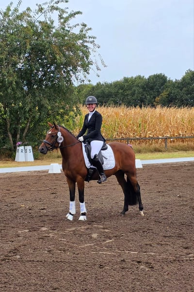 Nogger ist ein brauner Wallach von Neverland, Dance Star AT, Don Joshi AT und ist 146 cm groß. Mit seiner charmanten Art wickelt er jeden um den Finger. Sehr schicker Hengsttyp, verschmust und absolut lieb im Umgang. Er wurde als 2,5 jähriger Hengst gekört, ist mittlerweile aber kastriert. Nogger hat bereits ein wenig Turnieratmosphäre kennengelernt. 3-jähirg wurde er 4. auf dem Landeschampionat und konnte sich dieses Jahr in Dressurpferde A gegen Großpferde hoch platzieren. Nebenbei hatte er nach der Körung und auch 3-jährig nochmal jeweils ein paar Monate frei. Schmiede- und Verladefrom. Er ist bei uns geboren, aufgewachsen und ausgebildet. Also direkt vom Züchter in allerbeste Hände und nur mit tollen Haltungsbedingungen zu verkaufen.