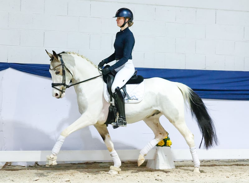 In unserer Kollektion stehen streng selektierte Reitponys f�r alle Anspr�che: Ausbildungs-, Zucht- und Kinderponys Hier gelangen Sie zur Gesamtkollektion: https://ponyforum.auction In einer echten Sonderfarbe kommt der vierjährige Liebharts Newt Scamander daher! Dieser Sohn des Siegerhengstes und Bundeschampion Neverland WE ist mit seiner auffälligen Falb-Scheckung direkt auf den ersten Blick von allen anderen Ponys zu unterscheiden. Aber nicht nur seine Zeichnung macht ihn zu einer Persönlichkeit. Ein Pony ohne „Gebrauchsanweisung“ – leichtrittig, immer positiv dem Reiter zugewandt, sicher an den Hilfen stehend, unerschrocken und einfach lässig! Newt macht es seinem Menschen einfach, er diskutiert nicht und stellt keine besonderen Ansprüche. Ein ganz reelles und einfach zu reitendes Nachwuchspony, das auch in seinem jungen Alter schon ein sehr sicheres Reitgefühl gibt. Newt hat im Sommer auch schon mal Turnierluft geschnuppert und war auch hier absolut brav und verlässlich. Ein klasse Ausbildungspony, das auf sicherem Dressurpferde-A-Niveau ausgebildet ist und auch erfolgsversprechend im Turniersport gestartet werden kann.
