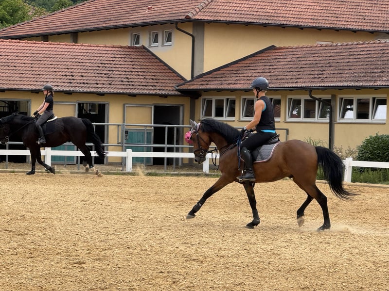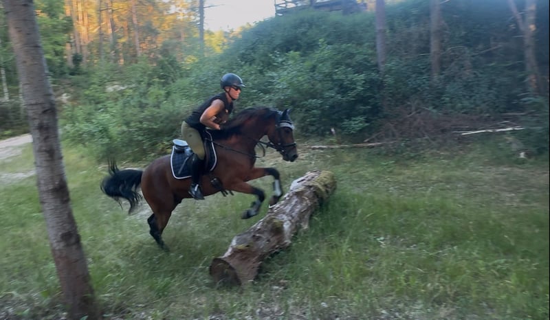 Nicht nur bildschön, sondern auch mit sehr guten GGA und ausgeprägtem Springvermögen ausgestattet. Besonders empfehlenswert macht ihn außerdem sein klarer Kopf, gepaart mit dem nötigen Ehrgeiz, um auch in der Arbeit zu gefallen. Väterlicherseits stammt er aus der Mentos-Linie, mütterlicherseits von Boney M. Seine Mutter Mayflower war regional im Dressur- und Springkader sowie im Vielseitigkeits-Landeskader mit meiner mittlerweile erwachsenen Tochter. Außerdem war sie als 3- und 4-Jährige für das Bundeschampionat qualifiziert. Mit meiner Tochter konnte sie zahlreiche Erfolge erzielen und war für das Bundesnachwuchschampionat nominiert. Sein Vater Million Reason stammt von Magic Cornflakes, der bis M**-Springen auch erfolgreich gegen Großpferde war. Unser Mogli wurde 3-jährig schonend angeritten, über den Winter noch einmal auf die Koppel geschickt und wird seit dem Frühjahr 2025 zweimal pro Woche geritten, da meine Reiterin leider nicht mehr Zeit hat. Seine ein Jahr ältere Vollschwester wird von Anfang an von einem kleinen Mädchen mitgeritten, das bereits einige Erfolge in Springen, Dressur und Vielseitigkeit erzielen konnte. Unser Mogli wird nur verkauft, weil mir leider die Zeit fehlt, ihn zu fördern und auf Turnieren vorzustellen. Bei Interesse können Sie mich gerne kontaktieren unter 0173/7472033 auch WhatsApp , da bin ich fast immer erreichbar oder Rufe auch zurück , wenn sie mir eine Nachricht hinterlassen.