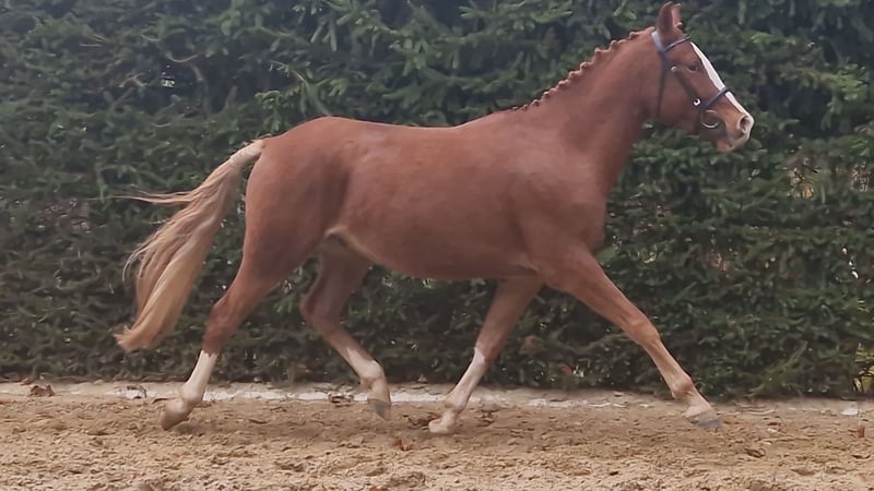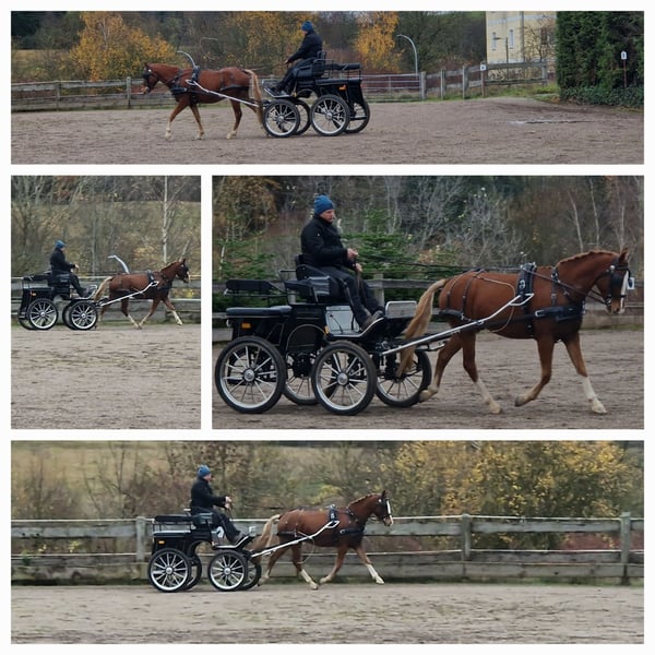 We are offering our 4-year-old gelding (Dornik Double × Principal Boy), who possesses excellent basic gaits and is very easy to handle, curious to learn, and well-mannered. He is already very well proportioned in conformation and has been trained to drive single with a cart. He has also been trained with double lungeing. He has not been ridden yet. He is completely herd-safe, farrier- and loading-friendly. Please contact us to arrange a viewing appointment if interested. Additional videos are available upon serious interest via email or WhatsApp. Contact at: 0173-5800815