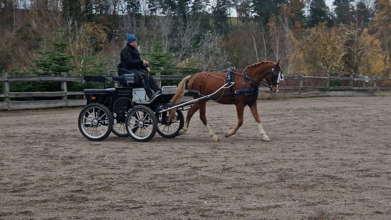 Wir bieten hier unseren 4jährigen Wallach an (Dornik Double × Principal Boy), der mit sehr guten Grundgangarten ausgestattet ist und äußerst umgänglich und lerninteressiert ist. Er ist bereits vom Exterieur sehr gut proportioniert und einspännig am Wagen ausgebildet. Ausgebildet mit Doppellonge. Bisher noch nicht geritten. Er ist absolut herdenverträglich, schmiede- und verladefromm. Bei Interesse bitte melden und Termin vereinbaren. Weitere Videos bei ernsthaftem Interesse per Mail oder WhatsApp möglich. Kontakt unter: 0173-5800815