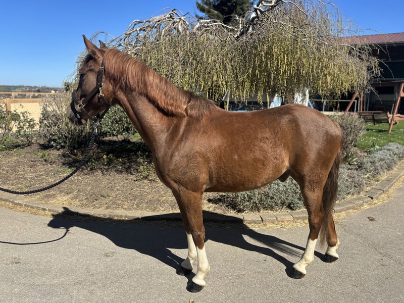This charming dark chestnut gelding impresses with his friendly and outgoing nature, as well as his promising basic training. He is well-schooled and suitable for both leisure riding and aspiring young riders. A reliable partner with great potential for further development.