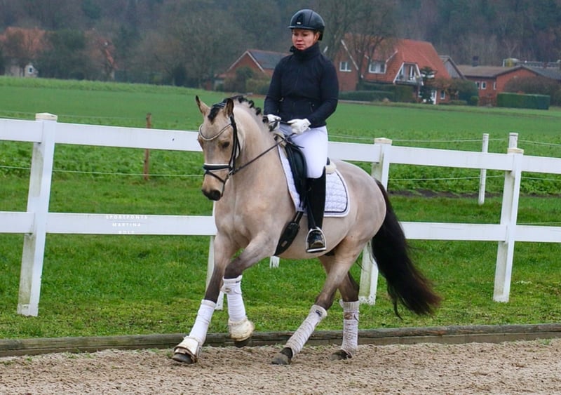 „Cinzano“ ist ein 3-jähriges Pony mit dem entsprechenden Wow-Faktor, bereits auf den ersten Blick kann er begeistern. Erst seit wenigen Monaten unter dem Sattel kann er bereits jetzt mit seiner unerschrockenen Art und Nervenstärke überzeugen. Egal ob Halle oder Platz, oder auch die Jagd im Hintergrund bei unserem Video-Termin, „Cinzano“ ist absolut cool und unerschrocken. Im Umgang ist der Wallach absolut brav und liebt es von seinem Reiter verwöhnt zu werden. Neben seinen tollen Charaktereigenschaften und seinem bildschönen Aussehen bringt er drei gute Grundgangarten mit. „Cinzano“ deckt mit seinem Rahmen problemlos größere Reiter ab. „Cinzano‘s“ Vater Charmeur ist ein direkter Nachkomme des legendären Vererbers „FS Champion de Luxe“. Über diese Linie, wie auch über die Mutterlinie „Benedict“ die auf den altbewährten Vererber „Brillant“ zurückgeht, ist „Cinzano“ doppelt veranlagt. Sein Vater, Muttervater und Großvater sind bekannt für kopfklare und rittige Ponys. Durch seine abgeklärte und unerschrockene Art eignet sich der Wallach bereits jetzt für jüngere Reiter oder aber auch eine Mutter-Tochter-Kombination. Bei weiterer Förderung hat man mit „Cinzano“ einen tollen Allrounder, mit dem die Türen für alle Sparten der Reiterei offenstehen. Ein röntgonologischer Tüv von November 2025 liegt vor. https://youtu.be/KoU2d0oyzso?si=_ZsyBydjLm3adpJY Bei ernsthaftem Interesse melden Sie sich gerne telefonisch unter der +491707941333.