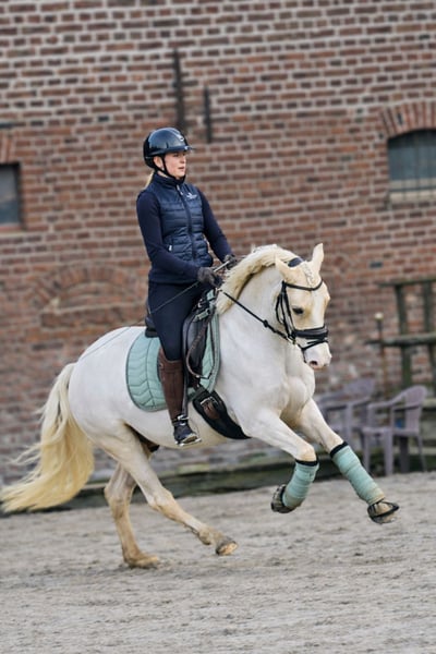 Deze absolute topkerel, afstammend van Diamond Touch NRW, zoekt een droomhuis. Video-link: https://youtube.com/shorts/FgbQpGwQo3c?si=SWBXOkjkzYgBheLd Hij is rustig en degelijk aangezad, zonder ooit ook maar één verkeerde voet te zetten. Of hij nu in de hal, op het springterrein of tijdens een wandeling om de blok, hij bewijst steeds zijn droomkarakter. Hij laat zich braaf rijden met een pad en was vanaf het begin ook heel goed te hanteren door kleinere kinderen. Hij blijft ontspannen liggen in de box voor knuffels met de kids, maar onder het zadel is hij fijn genoeg om zijn potentieel ook in FEI-sport te kunnen ontplooien. Hij springt netjes een kleine sprong en wij verwachten dat hij binnenkort op concours hetzelfde topwerk zal leveren als thuis, en dat hij in de dressuurproeven mooie resultaten mee naar huis brengt. Hij dekt goed af (ruiter op de foto is 1,68 m) en is licht te hanteren en makkelijk te rijden aan de teugel. Deze droomkerel toont drie zeer goede basisgangen met FEI-potentieel. Hij is zeer braaf bij de hoefsmid – zelfs bij de eerste beslagname – en was hier zonder sedatie ontspannen te scheren. Goede röntgenfoto’s, inclusief de rug, zijn al beschikbaar. Een droompony voor moeder-dochter of broers-zussen, waarbij een ruiter dit droompaard verder kan opleiden. Video’s en meer informatie via: 0177 275 9886 Instagram: https://www.instagram.com/s/aGlnaGxpZ2h0OjE3OTA5OTYzNDQyMjI2MzM4?story_media_id=3727113648335528103_7420643624&igsh=MTJteDBpYTU5Mmc3dA==