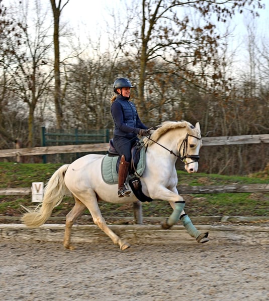 Dieser absolut tolle Kerl abstammen von Diamond Touch NRW sucht ein Traum Zuhause. Videolink: https://youtube.com/shorts/FgbQpGwQo3c?si=SWBXOkjkzYgBheLd Solide in Ruhe angeritten, hat er niemals auch nur eine falschen Tritt gemacht. Ob in der Halle, auf dem Springplatz oder bei einer Runde um den Block, stellt er hier seinen Traum Charakter unter Beweis. Er lässt sich brav auch mit Pad reiten und ist von Anfang an auch von kleineren Kindern super zu handeln gewesen. Inzwischen auch von 7 jährigen Mädchen begleitet geritten. Er bleibt zum Kuscheln mit den Kids in der Box entspannt liegen, ist aber unter dem Sattel fein genug um sein Potential auch im FEI Sport entfalten zu können. Er macht brav einen kleinen Sprung und wir erwarten, dass auf den in Kürze geplanten Turnieren genau so einen Topjob macht wie daheim. Er deckt super ab ( Reiterin auf den Bildern 1,68) und ist leicht in der Hand und easy an den Zügel zu reiten. Der Traumkerl zeigt 3 sehr gute Grundgangarten mit FEI Potential. Er ist super artig beim Schmied -selbst beim ersten Beschlag und war hier ohne Sedierung entspannt zu scheren. Gute Röntgenbilder inkl Rücken liegen bereits vor. Ein Traum Pony für eine Mutter/ Tochter- oder Geschwister-Kombination bei der ein Reiter dieses Traumpony weiter ausbilden kann. Videos und weitere Infos unter : 0177 275 9886 ALLE ANGABEN OHNE GEWÄHR, DA SIE AUF SUBJEKTIVEN EINDRÜCKEN DES ANBIETERS UND/ ODER VERKÄUFERS BERUHEN.