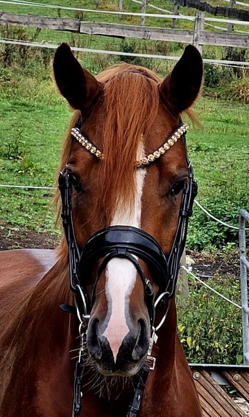 Gipfelfeuer, direkt vom Züchter steht dieser absolut sympathische und freundliche 4 jähriger Wallach mit 3 sehr guten GGA zum Verkauf! Vorallem der Schritt und der Galopp sind hier hervorzuheben, mehrfach Reitpferde platziert. War Finalist der 3 jährigen Pony-Hengste bei der Westfalen Woche und steht aufgrund seiner Größe nun zum Verkauf. Er zeigt sich unkompliziert und freundlich, Amateurgeeignet und auch erste Runden alleine im Gelände meisterte er vorbildlich. Röntgenbilder liegen vor, laut Tierarzt ohne Befund.