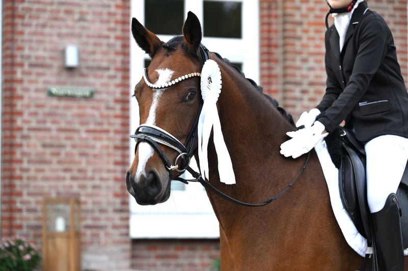 Coming Home, genannt Conrad, ist ein vierjähriger XXL Reitponywallach, aber von den Bewegungen her eher ein Großpferd im Kleinformat. Sein unerschütterlich takt- und schwungvoller Trab, sein sehr guter Schritt und guter Galopp machen ihn zu einem perfekten Partner fürs große Viereck. Er ist altersentsprechend in allen drei GGA zu reiten und macht täglich Spaß. Seine Abstammung von Doppelbundeschampion und mehrfach Europameisterschaftsteilnehmer DSP Cosmo Royale x Blachet (CastonTG) spricht für sich. Der 3/4 Bruder „Chocolatier“ steht als Prämienhengst auf dem Landgestüt Redefin. Conrad ist sehr personenbezogen und liebt es stundenlang betüddelt zu werden. Er wurde auch schon problemlos von einem 11 jährigen Mädchen geritten und ist sehr leicht am Zügel zu reiten. Daher ist er auch für körperlich schwächere Reiter bestens geeignet. Mit seinem Stockmaß von aktuell ca. 1,55m eignet er sich sowohl für Kinder als auch kleinere Erwachsene. Auch als zukünftiges Childrenpferd sehr gut denkbar. Aufgrund des Ausbildungsstandes noch kein reines Anfänger/Kinderpony, wohl aber schon für ein gut reitendes Mutter-Kind-Team/ gut betreutes Reiterlein. Unarten wie losrennen oder steigen kennt er nicht. Seinen ersten Turnierstart hatte er kürzlich in einem Reiterwettbewerb mit einer jugendlichen Reiterin. Hier zeigte er sich überdurchschnittlich brav für sein Alter und belegte direkt den dritten Platz. Siegerehrung und Applaus, kein Problem für das junge Pony. In seiner ersten und bisher einzigen Dressurpferde A konnte er sich sofort in einem starken Starterfeld gegen Großpferde platzieren. Den Tierarzt hat er bisher nur zur Kastration, Zähne machen und zum impfen gesehen. Er steht in der Herde und kennt täglichen Weide-/Paddockgang, Führanlage, kleine Runden um die Weiden reiten und hat schon 1 x Freispringen gemacht. Auch hier zeigte er sich talentiert, wurde aber dahingehend noch nicht weiter gefördert. Als Fohlen erhielt Conrad bei der Eintragung die Prämie und die 9,0 für den Trab. Danach habe ich ihn als Absetzer direkt vom Züchter gekauft und professionell und artgerecht in einer Herde aufziehen lassen. Der Verkauf erfolgt schweren Herzens und ausschließlich aufgrund von weiterer, eigener Nachzucht. Bei Bedarf kann er auch noch zur weiteren Ausbildung bis nächstes Jahr bleiben. Conrad wird nur in ein wertschätzendes Zuhause mit artgerechter Haltung abgegeben. Bitte keine Händler! Er wird nicht zur Verfügung gestellt. Eine AKU kann jederzeit vom Käufer beauftragt werden. Normale Trainingsvideos auf Anfrage, kein extra „strampeln lassen“.