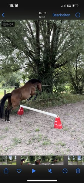Zum Verkauf steht ein schicker Deutscher Reitpony Wallach, aktuell 4 Jahre alt (wird im April 5 Jahre). Er ist um die 140 groß. Er ist geimpft und wurde regelmäßig dem Hufschmied vorgestellt. Das Pony wurde im letzten Jahr schonend angeritten und wird als leicht angeritten verkauft. Er ist unter dem Sattel in allen drei Grundgangarten geritten. Über den Sommer durfte er nochmal eine Pause auf der Wiese genießen. Im Herbst wurde er erneut leicht gearbeitet, stand jedoch über den Winter aus Zeitmangel wieder. Aktuell wird er behutsam wieder antrainiert. Er ist ein sensibles, feines Pony, das auch mal etwas guckig sein kann. Aufgrund seines Alters ist er nicht für Anfänger geeignet, da er auch mal etwas bocken kann. Im Gelände war er bisher nur im Schritt unterwegs, was er brav gemeistert hat – allerdings bisher ausschließlich in der Gruppe. Er macht einen sehr schönen Sprung, daher könnte ich mir ihn auch gut als zukünftiges Springpony vorstellen. Er ist aktuell kein Anfängerpony und sucht einen erfahrenen Reiter, der ihn weiter fördert und ihm Sicherheit gibt. Keine Reitschulen und keine Händler erwünscht Bei ernsthaftem Interesse freue ich mich sehr über eine Nachricht. Videos können gerne verschickt werden