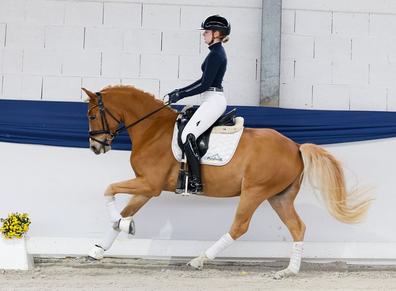 In unserer Kollektion stehen streng selektierte Reitponys f�r alle Anspr�che: Ausbildungs-, Zucht- und Kinderponys Hier gelangen Sie zur Gesamtkollektion: https://ponyforum.auction Teilnehmer Bundeschampionat 5j Dressurponys 2025, platziert in Reitpferdeprüfungen und Dressurpferdeprüfungen Klasse A, platziert in Dressurprüfungen Klasse A, platziert in WBO-Springprüfungen Mit dem hübschen strohblonden Hesselteichs Dylan kommt hier ein weiteres bereits hocherfolgreiches Nachwuchspony! Unter seiner jugendlichen Reiterin konnte sich der unkomplizierte Wallach in diesem Jahr für das Bundeschampionat der fünfjährigen Dressurponys qualifizieren, was für ein Erfolg! Und auch Turnierplatzierungen in Reitpferde-, Dressurpferdeprüfungen und Dressurprüfungen der Klasse A stehen zu Buche. Und, Achtung, sogar im Parcours macht Dylan eine gute Figur und konnte sich hier auch schon in WBO-Prüfungen platzieren. Ein rundum reelles Pony, das mit seinem freundlichen Wesen und seiner 24/7 Leistungsbereitschaft immer ein verlässlicher Kumpel UND Sportpartner für seinen Reiter ist. Alle Grundgangarten sind im guten Bereich, sein reeller altersentsprechender Ausbildungsstand holt jeden Nachwuchsreiter ab. Egal, ob Dressur – Springen – Gelände – Wellness – Dylan ist immer dabei und freut sich über die gemeinsame Zeit mit seinem Reiter!