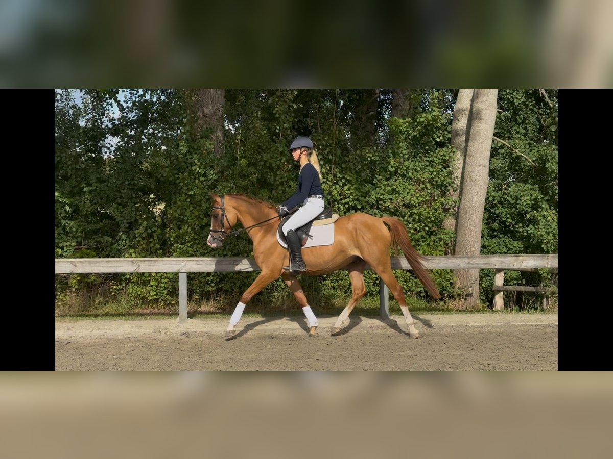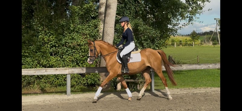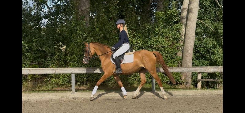 For Sale: German Riding Pony Gelding A beautiful German Riding Pony gelding born in 2021 is available for purchase. Standing at 14.6 hh, he is the perfect partner for ambitious riders who enjoy jumping. Our chestnut impresses with his friendly nature and high willingness to learn. He is already well-trained and shows great potential in show jumping. His movements are dynamic and elegant, making him a promising sport pony. The gelding is healthy, regularly vaccinated and dewormed. He has a balanced temperament and is well-behaved and cooperative both on the ground and under saddle. If you are looking for a talented and charming pony that provides lots of joy in both competition and leisure riding, this gelding is exactly what you need! For inquiries or more information, please feel free to contact us. We look forward to hearing from you!