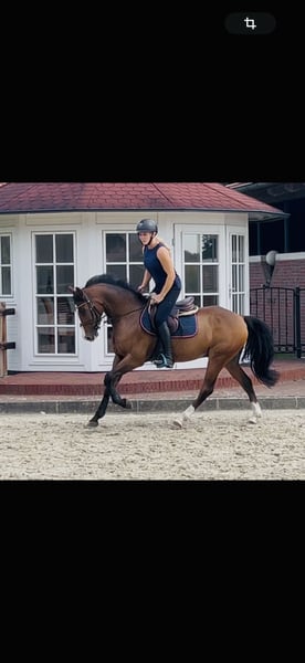 Questo puledro baio di 5 anni, alto 1,47 m, colpisce non solo per il suo aspetto, ma anche per la sua qualità nel salto! Ha già accumulato le prime esperienze nei concorsi ed è piazzato nel salto ostacoli A e A. Assolutamente impavido e rilassato, affronta i suoi compiti in gara. Possiede buone andature di base, con un galoppo particolarmente degno di nota. Dressage e salto ostacoli A completati. Ama andare nel bosco, sia da solo che in gruppo. Salta anche ostacoli da cross assolutamente senza paura e con grande lucidità. Un ottimo pony da giovane per il salto ostacoli e il completo! Nell'interazione è totalmente semplice. Maneggio, carico, veterinario, tutto senza problemi. È disponibile un attuale certificato radiografico senza risultati anomali. Il prezzo aumenterà con ulteriore addestramento. Possibilità di prova su accordo in qualsiasi momento.