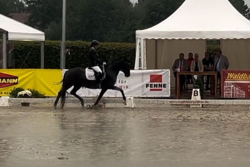 5-year-old gelding with a wonderful, gentle character, diligent and sensitive type. Measured at 1.47 m, with shoes 1.48 m. Recently measured for 2026, so height is secure. Placed 8.1 in riding horse class and highly ranked in dressage pony A. I can also very well imagine him for jumping or eventing. However, he has not been specifically trained for these disciplines, as I only ride dressage – but he already shows a great jump. Farrier and loading are no problem, no known health issues. He is safe to hack alone. Good X-rays from 2024 available. I would love for him to become a family pony rather than just a sport pony. Quality before price.