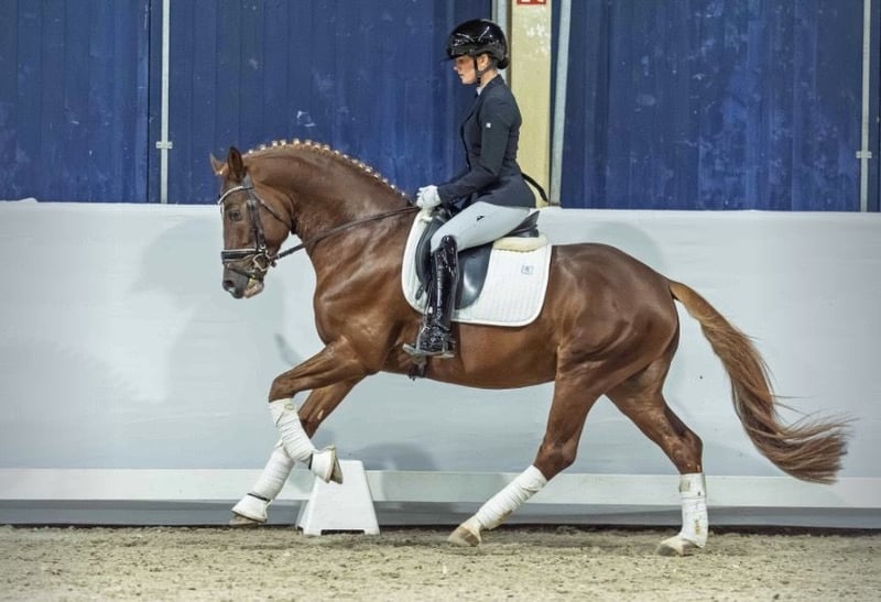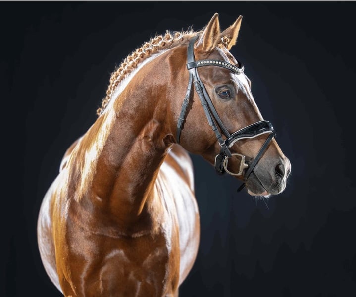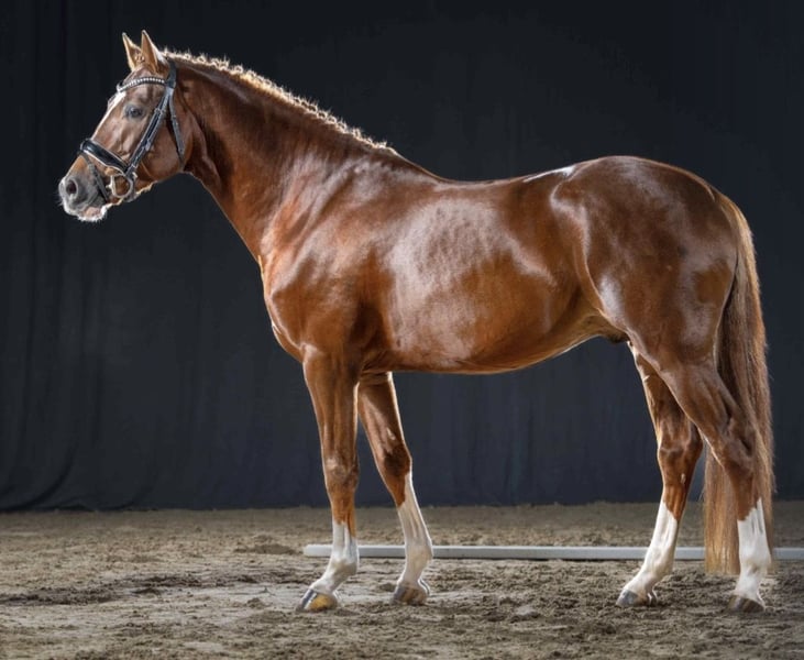 Hesselteichs Gilbert wurde 2023 in Verden gekört und konnte sich bereits früh erfolgreich im Turniersport präsentieren. In seiner ersten Reitpferdeprüfung wurde er direkt 2. – im direkten Vergleich mit Großpferden. Gilbert hat seine HLP abgelegt und macht auch einen sehr guten Sprung! Seine Qualität, Rittigkeit und Bewegungsstärke machen ihn zu einem vielversprechenden Nachwuchspferd für den Sport. Obwohl Gilbert sehr wenig Hengstmanieren hatte und im direkten Kontakt mit Stuten gehalten wurde, haben wir uns entschlossen ihn zu kastrieren um ihn bessere Haltungsbedingungen bei seinen zukünftigen Besitzern zu ermöglichen. Gilbert deckt sehr gut ab, daher können wir uns auch größer Reiter unter ihm vorstellen. Sein Vater Gandalf vereint in seinem Pedigree die beiden renommierten Ponyvererber FS Golden Highlight und Going East, die sowohl im Sport als auch in der Zucht hochkarätige Erfolge vorweisen können. Die Mutter N’ypense pas hat ihre Vererbungskraft eindrucksvoll unter Beweis gestellt: Sie brachte bereits einen gekörten Sohn sowie zwei Staatsprämientöchter hervor. Ihre Nachkommen sind im Turniersport erfolgreich bis zur Klasse L in der Dressur. Röntgenbilder liegen vor und sind laut Tierarzt ohne Befund!