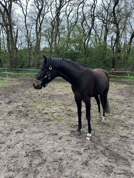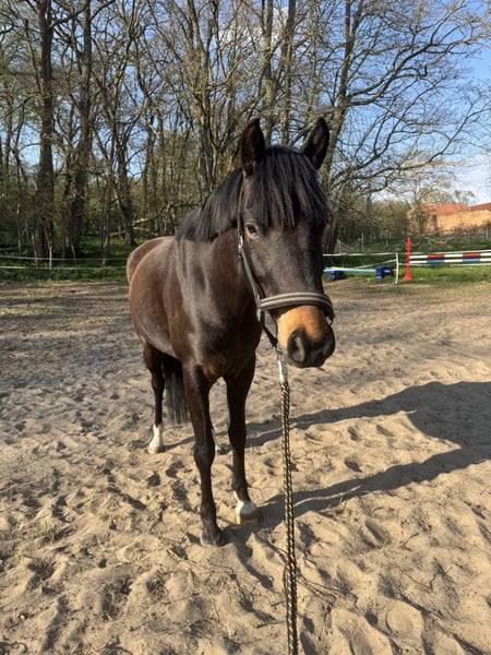 Schweren Herzens verkaufe ich aus persönlichen, privaten Gründen meinen 5-jährigen Deutschen Reitpony-Wallach „Bismarck“ mit einem Stockmaß von ca. 150 cm. Er wurde im letzten Jahr schonend angeritten, beherrscht alle drei Grundgangarten sicher und hat bereits erste kleine Sprünge brav gemeistert. Für sein junges Alter ist er unerschrocken, sehr lieb und im Umgang wie unter dem Sattel unkompliziert. Altersbedingt muss er natürlich noch weiter lernen, zeigt sich dabei aber stets motiviert und kooperativ. Bismarck geht allein sowie in der Gruppe zuverlässig ins Gelände und ist auch dort sehr brav. Er ist als Turnierpferd eingetragen, durchgeimpft und somit grundsätzlich auch für den Turniersport geeignet. Gesundheit: Er ist Ekzemer, kommt mit konsequenter Nutzung seiner Ekzemerdecke jedoch gut durch den Sommer. Haltung: Aktuell steht er im Offenstall zusammen mit zwei weiteren Wallachen. Diese Haltungsform wünsche ich mir auch weiterhin für ihn, da er nichts anderes kennt. Zubehör inklusive: - angepasster Kieffer Vielseitigkeitssattel - Trense - Ekzemerdecke Ein tolles, junges Reitpony mit gutem Charakter, ideal für Freizeit, Gelände und den weiteren sportlichen Aufbau.