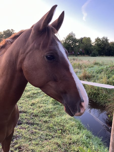 Zum Verkauf steht ein sehr lieber und motivierter 4-jähriger Wallach (ca. 1,51 m) von Cosmo Royale aus einer Black-Delight-Mutter. Er besticht durch seine außergewöhnlich auffällige Zeichnung: Fuchs mit breiter Blesse, vier weißen Beinen und einem großen weißen Fleck unterm Bauch – ein echter Hingucker. Seit August ist er schonend angeritten und wird zwei- bis dreimal pro Woche gearbeitet. Unter dem Sattel zeigt er sich super brav, ruhig und unkompliziert, lässt sich in allen drei Grundgangarten angenehm reiten und möchte seinem Reiter immer gefallen. Vom Typ her ist er ausgeglichen und sehr verschmust, macht im täglichen Umgang alles brav mit und zeigt sich auch beim Verladen sowie im Anhänger völlig problemlos. Durch seine Größe eignet er sich besonders gut für größere Jugendliche oder kleinere Erwachsene, die einen sicheren, freundlichen und gut auszubildenden Partner suchen. Ein absolut sympathischer junger Wallach, der durch sein tolles Wesen und seine besondere Optik täglich Freude bereitet und mit weiterer Förderung ein wunderbarer Begleiter für Freizeit, Ausbildung oder später auch den Sport werden kann.