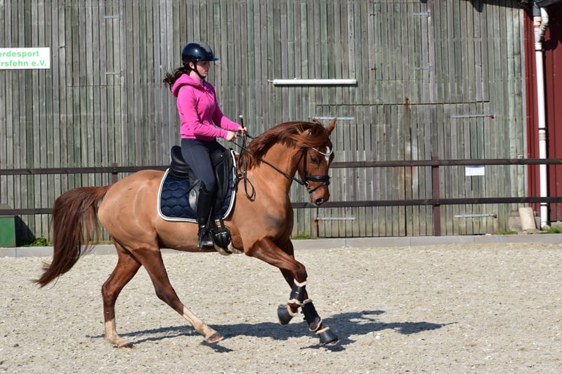 Zum Verkauf steht ein vielversprechender Deutscher- Reitpony-Wallach, genannt Dancing Fire abstammend vom Dance Star At und geboren im Jahr 2021. Dieser charmante Fuchs besticht durch sein elegantes Erscheinungsbild und sein angenehmes Temperament. Mit einem Stockmaß von 152 cm ist er perfekt für den ambitionierten Freizeitreiter oder den aufstrebenden Turnierreiter geeignet. Der Wallach zeigt bereits gute Ansätze in der Dressur und überzeugt durch seine aufgeschlossene und lernbereite Art. Er ist gut geritten, aufmerksam und besitzt eine solide Grundausbildung. Im täglichen Umgang ist er sehr lieb, hat aber positives ,,Go,, unterm Sattel. Daher ist er nichts für den reinen Anfänger. Die Mutter selbst war in allen Sparten erfolgreich ( Springen bis L) daher denke ich das man mit ihm in allen Sparten erfolgreich sein kann. Im Freispringen zeigt er sich auch motiviert und macht einen guten Sprung. Dieses talentierte Reitpony ist ein echtes Allround-Talent, das mit seiner charmanten Art und seinem Potenzial begeistert. Es ist eine ideale Ergänzung für jeden Ponyliebhaber, der Wert auf Qualität, Charakter und Zukunftspotenzial legt. Selbstverständlich verladefromm, man kann mit ihm einfach alleine losfahren und reiten. Bei uns steht er in einer gemischten Herde, nachts in der Box und tagsüber auf dem paddock. Er befindet sich in Beritt und daher steigt der Preis mit zunehmender Ausbildung. Aktuelle Röntgenbilder liegen vor ohne Befund ! Keine Schulbetriebe ! Platz vor Preis ! Bei Interesse freue ich mich über eine Nachricht oder per Telefon: 0176/45979929