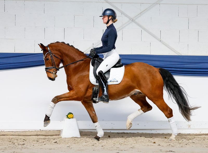 In unserer Kollektion stehen streng selektierte Reitponys f�r alle Anspr�che: Ausbildungs-, Zucht- und Kinderponys Hier gelangen Sie zur Gesamtkollektion: https://ponyforum.auction Erfolge: in Holland platziert in L1 und L2 (vergleichbar mit DR A* und A** in Deutschland) Mit dem groß aufgemachten Ferris präsentiert sich hier ein hervorragend ausbalanciertes und schon mit viel Tragkraft versehenes Nachwuchspony, das einen beispielhaften Arbeitswillen präsentiert! Ihn bringt nichts aus der Ruhe, auch wenn mal übermotivierte Ponyfreunde losbuckeln oder vor der Halle ein Trecker rangiert – das macht ihn alles überhaupt nicht wild. Diesen Eindruck bestätigen auch seine top Platzierungsergebnisse, die er in Jungpferdeprüfungen in Holland bereits sammelte (Originalname Steerwoldes Caelum). Dressurkenner geraten bei seinem Bewegungsablauf ins Schwärmen - diesen Wallach kann man sich schon jetzt im großen Viereck vorstellen, er bringt alle Möglichkeiten mit. Ein gut zu sitzendes und hochanständiges XL-Pony, das im täglichen Handling eigentlich auch immer nur Bonuspunkte sammelt. Lieb, ausgeglichen, unkompliziert und immer freundlich zu jedem, der an seiner Box anhält.