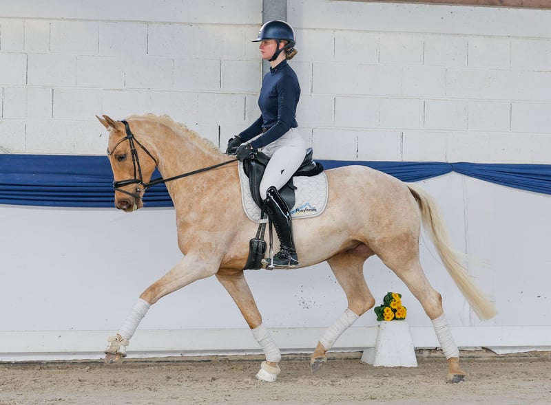 In unserer Kollektion stehen streng selektierte Reitponys f�r alle Anspr�che: Ausbildungs-, Zucht- und Kinderponys Hier gelangen Sie zur Gesamtkollektion: https://ponyforum.auction Ein hochanständiger Palominowallach im begehrten XL-Maß steht mit Gründleinshofs Fürstengold in unserer Kollektion. Dieser fünfjährige Wallach ist ein ganz reell ausgebildetes XL-Pony. Unsere Bereiter mögen sein angenehmes Arbeitstempo und seine unkomplizierte Einstellung sehr! Fürst kennt kein „nein“, er ist immer pro Reiter eingestellt. Er ist ein harmonisch aufgemachter Wallach im passenden Reitpferdeformat. Mit seiner guten Linierung deckt er auch größere Reiter bestens ab! Fürst ist auf sicherem Dressurpferde-A-Niveau ausgebildet und kann auch direkt im Turniersport eingesetzt werden.
