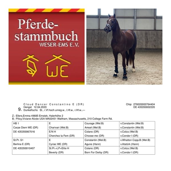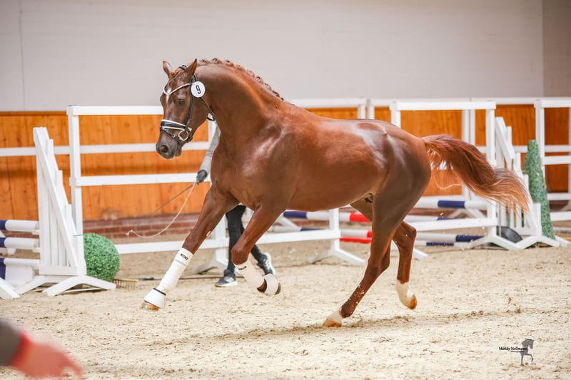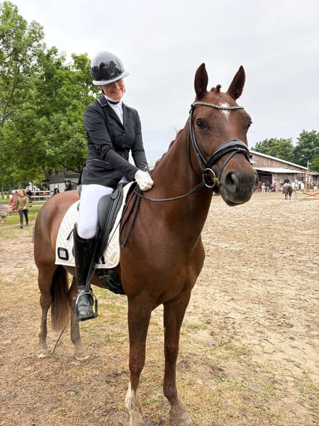 **100% Fun Pony in XXL Format** Tino has three quality gaits, with the canter particularly standing out. He gives you the true "Cloud 9" feeling, always moving beautifully in rhythm and uphill. The walk is always rhythmically correct, and the trot flows dynamically through the body. His pedigree points to a very successful pony line in sports, known for ponies with a fighting spirit. His father, for example, is very successful in FEI pony competitions in Sweden. Tino is very intelligent and learns quickly. He can already perform a flying change, whether in dressage or jumping saddle. He is placed in Dressage A and regularly works on the L-level exercises in training. In addition to his classical training under saddle, he has also learned to work on the long reins, where he is familiar with ground work, including the bow, the Spanish walk, and more. You can also enjoy trail rides with him, either in a group or alone; he is versatile. He is farrier-friendly and loading-friendly, and when he is groomed in the stable, he also enjoys having his mane scratched. Overall, a super talented XXL pony with charisma and character that brings joy every day and always wants to participate. 48 X-rays from February 2020 are available for viewing, all without findings except for 2 chips that were surgically removed in November 2020. Follow-up images are also available. If you are interested or need further information, please feel free to contact me, and Tino can be tried out in Ladenburg at any time.