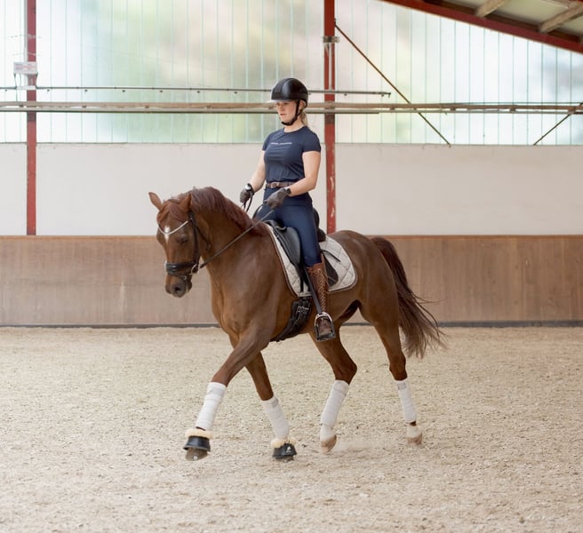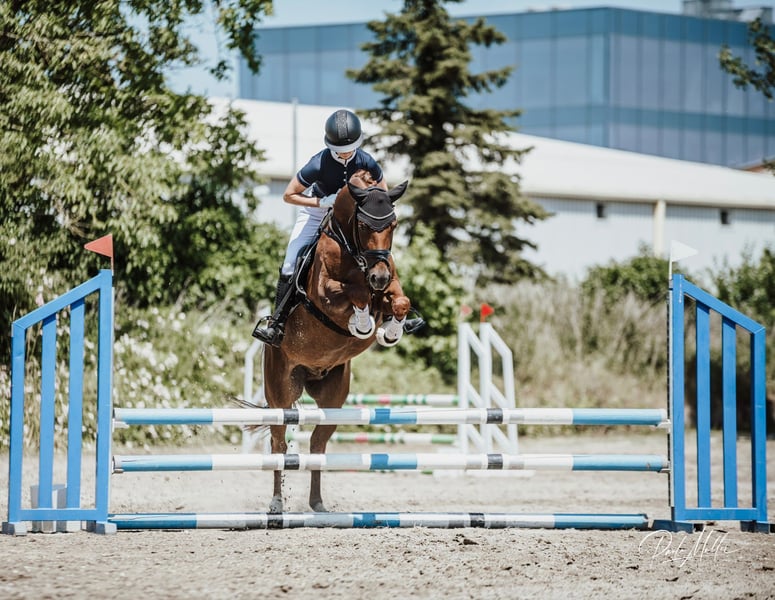 **Poney de plaisir 100 % au format XXL** Tino a trois allures de qualité, dont le galop se distingue particulièrement. Il procure une véritable sensation de "Cloud 9", toujours en rythme et en montée. Le pas est toujours régulier et le trot est dynamique et fluide. Sa lignée indique un très bon lignage de poneys performants dans le sport, ce sont des poneys au cœur de combattant. Son père, par exemple, est très actif et réussi dans le sport FEI pour poneys en Suède. Tino est très intelligent et apprend rapidement. Il peut déjà effectuer des changements de pied au galop, que ce soit en selle de dressage ou de saut. Il est placé en dressage niveau A et travaille régulièrement sur les leçons de niveau L. En plus de sa formation classique sous la selle, il a également appris à travailler à la longe, où il connaît également le compliment, le pas espagnol et plus encore. Les sorties en extérieur peuvent également être appréciées avec lui, que ce soit en groupe ou seul, tout est possible. Il est ferré et chargé sans problème, et lorsqu'il est brossé dans le box, il apprécie également les caresses sur la crinière. Dans l'ensemble, un poney XXL super talentueux avec du charisme et du caractère, qui apporte du plaisir chaque jour et qui souhaite toujours participer. 48 radiographies de février 2023 peuvent être consultées, elles sont sans constatation sauf pour 2 puces qui ont été retirées chirurgicalement en novembre 2023. Des images de suivi sont également disponibles. Pour toute question ou pour plus d'informations, je reste à votre disposition, et Tino peut être essayé à tout moment à Ladenburg.