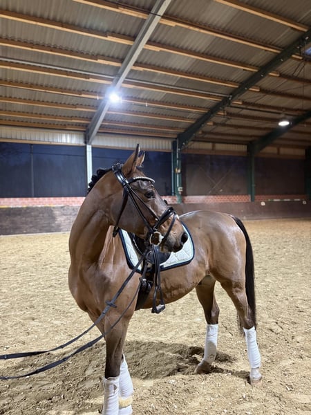 For sale is our 6-year-old gelding Nobeltje. He is sired by Nobel Nagano NRW x Nightstar III. He was born with us and has grown up in loving care. Nobeltje impresses as a sporty pony with three very good basic gaits. He was backed late and shows himself under saddle as very willing to learn, motivated, and clever, always eager to do everything right. In his two previous competition starts, he presented himself as absolutely well-behaved and uncomplicated. He is a pony with a lot of go, always honest and attentive. He is also familiar with outdoor terrain and jumps small fences. As he requires a confident and consistent rider, he is not a beginner pony! We are looking for a 5-star home for him with experienced people who enjoy further developing a talented and strong-charactered pony. Nobeltje will only be given into the best hands! Quality over price! For serious inquiries and further questions, please feel free to contact us!