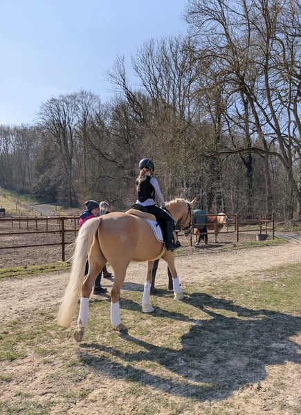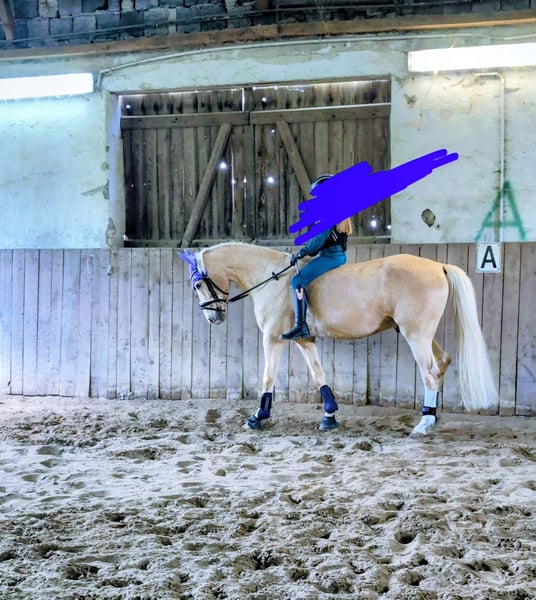 Zum Verkauf steht hier ein sehr gehfreudiger und leistungsbereiter Palomino Wallach. Goldie begeistert jeden Tag aufs Neue mit seinem Arbeitseifer. Er befindet sich derzeit in Profiberitt und kann dort jederzeit besichtigt werden. Er ist 5 Jahre alt, A-sicher und beherrscht bereits erste L-Lektionen. Im Gelände ist er brav und liebt die Abwechslung. Auch kleine Sprünge meistert er wurde hier allerdings nicht weiter gefördert. FEI Potenzial Er ist sehr menschenbezogen, liebt es zu kuscheln und genießt die Nähe seiner Bezugsperson. Im Umgang zeigt er sich freundlich und sozial, ist mit anderen Pferden sehr verträglich. Neben dem Reiten wurde mit ihm auch Boden- und Handarbeit gemacht. Er kann von Kindern oder Jugendlichen geritten werden, sollte jedoch altersbedingt weiterhin regelmäßig von einem Erwachsenen mitgeritten werden. Er zeigt sich neugierig unterschiedliche Untergründe, Planen, ein großer Ball oder wenn man hinten runter rutscht all das bringt ihn nicht aus der Ruhe. Außerdem liebt er Wasser und geht begeistert durch Pfützen. Schmied, Verladen und Tierarzt (zum impfen) sind absolut kein Problem. Er ist mit 1,47m eingemessen. Schöner Platz vor Preis