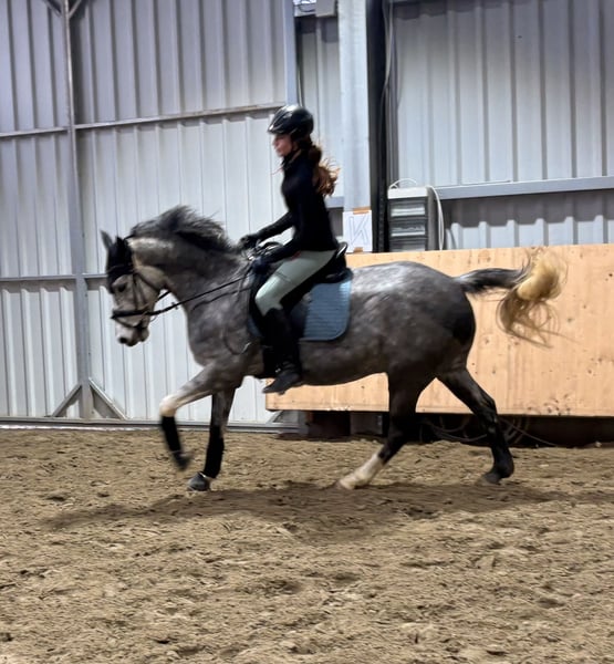 Zum Verkauf steht ein deutsches Reitpony, geboren 2020 mit einem Stockmaß von 1,51 m mit viel Ausdruck. Dieses Pony steht derzeit im Offenstall, kennt aber auch die Box. Diese wird ihm mit rationiertem Futter auch besser bekommen. Er braucht einen Reiter, der ihm Sicherheit gibt. In allen drei Grundgangarten lässt er sich flüssig und harmonisch reiten, sucht die Anlehnung an die Hand und vermittelt dabei ein angenehmes Reitgefühl. Ein lernwilliges und kluges junges Sportpony, welches weiter gefördert werden will. Nur bei ernsthaften Interesse melden. Für jedes Probereiten werden 20 € berechnet.