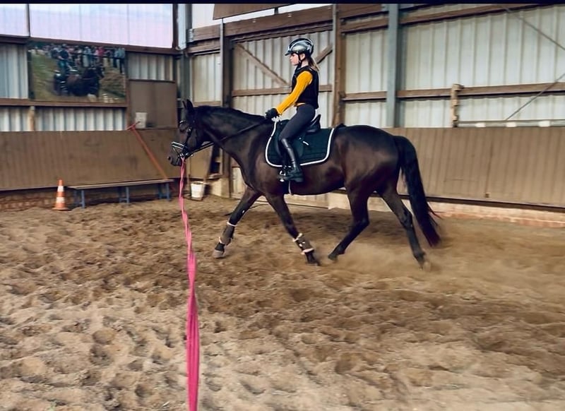 Vielseitiger, charakterstarker Wallach mit bester Grundlage Zum Verkauf steht ein 6-jähriger Wallach mit einem absolut außergewöhnlichen Charakter – ehrlich, ausgeglichen und jederzeit verlässlich (10/10). Sein bisheriger Ausbildungsschwerpunkt lag im Fahrsport, wo er sowohl ein- als auch zweispännig eingesetzt wurde. Aufgrund seiner Größe passt er jedoch nicht mehr optimal ins bestehende Gespann, weshalb er erst vor wenigen Monaten schonend angeritten wurde. Aktuell befindet er sich weiter im Beritt und überzeugt hier durch seine hohe Lernbereitschaft, seine Unerschrockenheit sowie seine durchweg brave Art. Alters- und entwicklungsbedingt befindet er sich noch im Wachstum und arbeitet daran, seine Balance unter dem Reiter weiter zu festigen – eine tolle Chance, seine Ausbildung behutsam weiter aufzubauen und individuell zu fördern. Er wird regelmäßig abwechslungsreich gearbeitet: Neben dem Reiten wird er auch einspännig gefahren und gelegentlich von einem Kind an der Longe geritten, was seine Verlässlichkeit und sein ruhiges Gemüt zusätzlich unterstreicht. Er kennt: - Longenarbeit - Führanlage - Paddock - Reiten in der Halle sowie auf dem großen Außenplatz Im Umgang zeigt er sich stets freundlich, unkompliziert und menschenbezogen. Er ist sowohl mit Stuten als auch mit Wallachen/Hengsten gut verträglich und integriert sich problemlos in bestehende Herden. Ein toller Allrounder mit solidem Fundament und viel Potenzial für die weitere Ausbildung, sowohl für den ambitionierten Freizeitreiter als auch für den Fahrsport bestens geeignet. Videos unterm Reiter und im Freilauf auf Anfrage vorhanden.