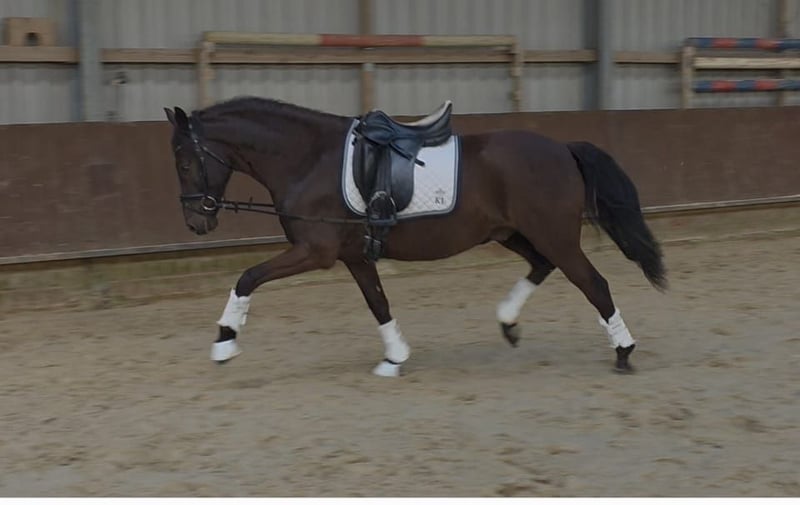 Cheval de selle polyvalent, au caractère affirmé, avec une excellente base Nous proposons à la vente un hongre de 6 ans doté d’un caractère absolument exceptionnel – honnête, équilibré et toujours fiable (10/10). Jusqu’à présent, sa formation s’est concentrée sur le dressage en attelage, où il a été utilisé en monoplace comme en paire. Cependant, en raison de sa taille, il ne s’intègre plus parfaitement dans le harnais existant, c’est pourquoi il a été doucement monté il y a seulement quelques mois. Actuellement, il est encore en cours de dressage et impressionne par sa grande capacité d’apprentissage, son courage et son tempérament très calme. En raison de son âge et de son développement, il est encore en croissance et travaille à renforcer son équilibre sous le cavalier – une belle opportunité pour poursuivre son éducation avec douceur et l’adapter à ses besoins individuels. Il est régulièrement travaillé de manière variée : en plus du travail monté, il est également attelé en monoplace et, de temps en temps, monté en longe par un enfant, ce qui souligne encore sa fiabilité et son tempérament serein. Il connaît : - le travail à la longe - la marche en liberté - le paddock - le travail en carrière intérieure ainsi que sur le grand manège extérieur En main, il se montre toujours amical, facile à vivre et proche de l’humain. Il s’entend aussi bien avec des juments qu’avec des hongres ou des étalons, et s’intègre sans problème dans des troupeaux existants. Un excellent cheval polyvalent, avec une solide fondation et beaucoup de potentiel pour la suite de sa formation, idéal aussi bien pour le cavalier de loisir ambitieux que pour le dressage en attelage. Vidéos en selle et en liberté disponibles sur demande.
