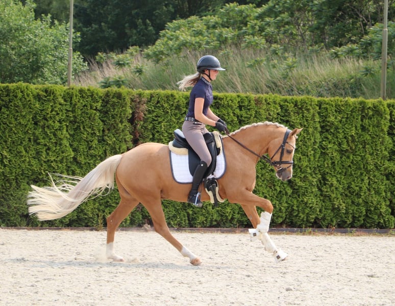 Te koop staat de uitzonderlijke Duitse rijpony Coconut Kiss HSH met een stokmaat van 1,48 m. Geboren in 2020, overtuigt hij door zijn uitstekende afstamming als zoon van de gerenommeerde Coke Saint of the Life en uit de legendarische lijn van FS Champion de Luxe. Coconut Kiss HSH biedt FEI-kwaliteiten met bovengemiddelde basisgangen, gekenmerkt door taktzekerheid en elegantie. Vooral indrukwekkend is zijn legendarische draf, die hem als een ware legende over de piste laat bewegen. Ook in de stap overtuigt hij door gelijkmatige en ritmische bewegingen. Hij is ontzettend lief, heeft een zeer oprechte en rustige aard, waardoor hij een betrouwbare partner is. Coconut Kiss HSH is gemakkelijk door kinderen te rijden en toont zich altijd coöperatief en gemotiveerd. Al in de training laat hij zich van zijn beste kant zien en is hij ideaal voor ruiters van alle leeftijden. Houd er rekening mee dat er €30 wordt gerekend voor het tonen en voorbereiden van het paard. Bij directe afname geven wij 5% korting op de koopprijs. Grijp deze kans om dit prachtige pony te kopen, dat zowel in de sport als in de recreatie een veelbelovende toekomst heeft! Bij interesse of voor verdere vragen sta ik graag voor u klaar.