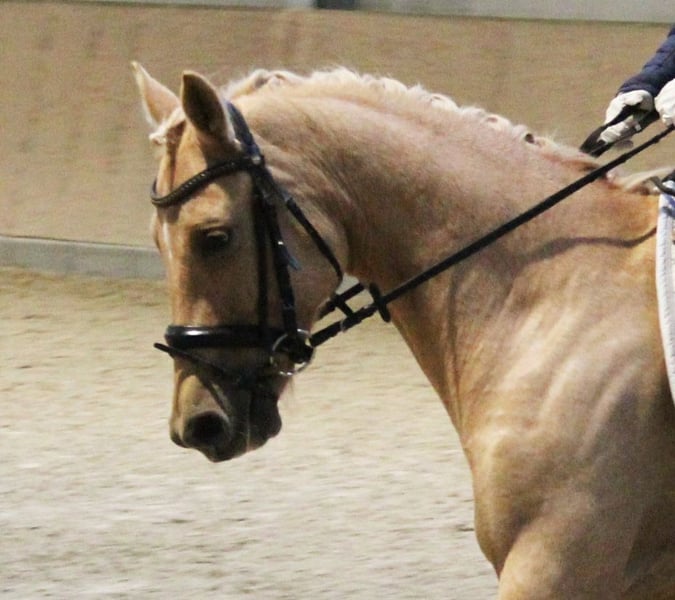 **Sale ad: Charming German Riding Pony gelding** For sale is a beautiful German Riding Pony gelding, born in 2018. This charming palomino not only impresses with his eye-catching color, but also with his pleasant temperament and excellent dressage qualities. With a height of 145 cm, he is ideal for ambitious riders looking for a reliable and talented partner for dressage. He is always motivated and willing to learn, which makes him the perfect companion for both competition and everyday training. Interested parties are cordially invited to meet this exceptional gelding in person. For further information and to arrange a viewing appointment, please do not hesitate to contact us. [Your contact details]