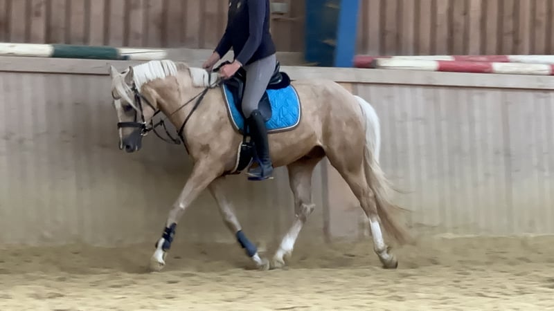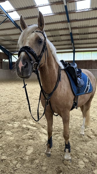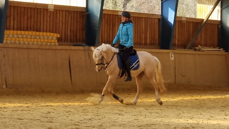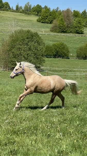 Schweren Herzens suche ich für meinen sensiblen, traumhaften Palominowallach ein neues, liebevolles Zuhause. ✨ Er ist einfach ein Herzenspferd – bildschön, fein im Charakter, verschmust und immer bemüht, seinem Menschen zu gefallen. • Deutsches Reitpony XL, Wallach, geb. 2019 • ca. 152 cm, Palomino, volles Papier • Barhuf, gesund, Zähne gemacht, regelmäßig geimpft (Tetanus, Influenza, Herpes), Physio & Osteo • Aufgewachsen in artgerechter Jungpferdeherde, kennt Offenstall, 24/7 Weide und Paddockbox mit Weidegang • Brav im Umgang, sehr menschenbezogen und sozial verträglich Er wurde im Mai 2024 schonend angeritten, durfte den Sommer über noch einmal Pause machen und wird seit Oktober 2024 wieder regelmäßig drei Mal pro Woche geritten. Er zeigt sehr gute GGA, springt mit Freude und hat einfach unglaublich viel Qualität und Charme. Da er sensibel und noch in Ausbildung ist, wünsche ich mir für ihn einen erfahrenen, geduldigen Menschen, der ihn weiter fördert und ihm Zeit zur Entwicklung gibt. noch Kein Anfänger- oder Kinderpferd. Eine Kombi aus erfahrener Mutter und gut reitendem Kind oder eine erfahrene Jugendliche mit entsprechendem reiterlichen Können könnte ich mir auch gut vorstellen. Verkauf nur an Privat in absolut gute, fördernde Hände mit artgerechter Haltung. Keine Videosammler – wer ernsthaft Interesse hat, darf ihn gerne kennenlernen. Probereiten nach Vereinbarung (30 €, werden beim Kauf verrechnet).
