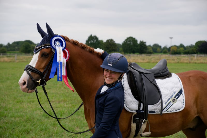 For sale is a typy German Riding Pony, 8 years old, with competition experience. The gelding has been successfully placed in both dressage and show jumping up to class A. In dressage, he is currently on a great path towards L dressage! He impresses with a pleasant temperament and can also be ridden by children. Due to his versatile training, he is suitable for both competitive riders and as a loyal leisure partner. Key data: - German Riding Pony, gelding, 8 years old - Successfully presented in dressage and show jumping up to A - Loves trail rides and is always well-behaved there - Used to being outside during the day and in a paddock box at night - Fully vaccinated and regularly dewormed - Naturally good with farriers and loading - Good veterinary examination from 2021 available