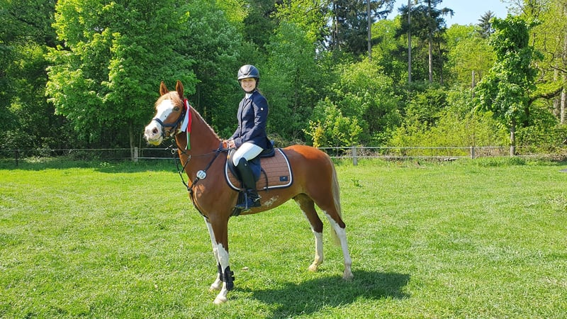 Strikingly beautiful, colorful chestnut pony with a height of 1.47m is looking for a new home due to a transition to a larger horse. Patch impresses with his friendly, approachable, and balanced nature, and has achieved solid placements up to class A. Due to his size, he is suitable for ambitious children and teenagers, as well as small adults. As an all-round pony with charm and character, he is the perfect family pony. Patch delights with his positive, motivated work ethic in everyday situations and in the arena; his combination of diligence, attentiveness, and good basic gaits makes him an easy ride. He is always well-behaved and reliable in handling, easy to manage, naturally good with the farrier and loading, and a calm and sociable pasture companion. Trail rides in groups or alone are possible without any issues. Patch is very focused on his caregivers, is regularly vaccinated, dewormed, and is barefoot. The last dental check-up took place in July. We are looking for a loving home where Patch will bring much joy. If interested, please feel free to contact me on WhatsApp: 01575/3477977.