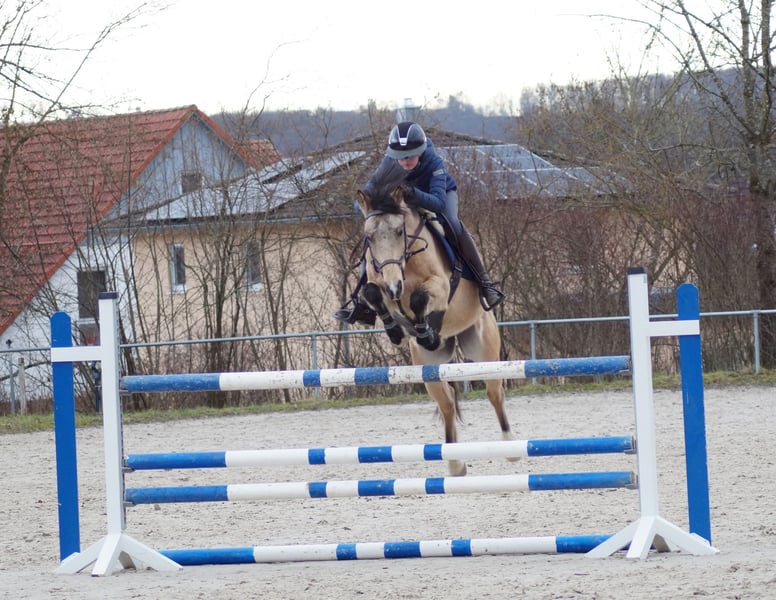 For sale: German riding pony – ideal for ambitious riders! We are offering a beautiful 8-year-old German riding pony gelding. He was licensed as a stallion at age 3. Very responsive and perfect for eventing. Placed up to 115 cm show jumping Pony Master (2024) 115 cm, 6th place Winner of the Landesjugendcup Final Pony with a score of 8.1 (2023) Winner of the Spring Horse L class (2023) Munich Young Talents (2024): scored 8.5 in A* style and 8.3 in A** with increasing difficulty, also scored 8.2 in A** Regional pony team for eventing and show jumping He also enjoys dressage work immensely and is trained up to L level. FEI measured at 147 cm. Please contact me via WhatsApp or message for videos! Since my pony career is coming to an end, he is now for sale. He will only be entrusted to the best hands! If you are interested or need more information, please feel free to call me at 0174 8020077. Visits and trial rides are possible by arrangement.
