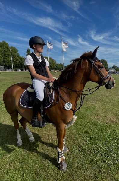 Gelding, 8 years old, 1.48 m Best show jumping pony lineage: Bünteeichen Ricardo x Scampolo This characterful pony gelding is looking for a new home with family integration. He is very people-oriented and loves children. He has been trained in jumping and has already gained some competition experience, having been presented up to A* level. He has 3 great gaits and is very pleasant to ride. He can easily be ridden by children. Currently, my son (13 years old) is riding him, but he is now transitioning to a larger horse. Additionally, he is receiving professional training. He is very well-behaved with the farrier and during loading. At present, he has two front shoes. He is fully vaccinated for competitions, regularly sees the dentist and farrier, and is also regularly checked by an osteopath and chiropractor. A current, extensive vet check including neck from 7/24 is available. No findings. He is absolutely herd-compatible and is rather submissive here. He has no problems with other horses. Videos can be sent upon request. 0178/1325330 Inquiries are welcome via WhatsApp. Trial rides are possible. Extensive equipment, such as 2 high-quality saddles and bridles, as well as various blankets, etc., can be purchased additionally.