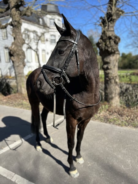 Dieser bildhübsche Rappe vom Besten G x Chardonnay (04/2018, ca.1,50m) begeistert mit seiner tollen Präsenz, drei guten Grundgangarten und Leichtigkeit im Umgang. Aktuell befindet er sich auf solidem L-Niveau und zeigt sich dabei stets lernwillig. Auch auf dem Turnier konnte er bereits Erfahrungen sammeln. Gelände kennt er ebenfalls. Aktuell ist er viermal beschlagen und von wird unserer 15jährigen Tochter geritten. Mit ihm kann man einen neuen Partner fürs reiten und für sein Herz gewinnen.