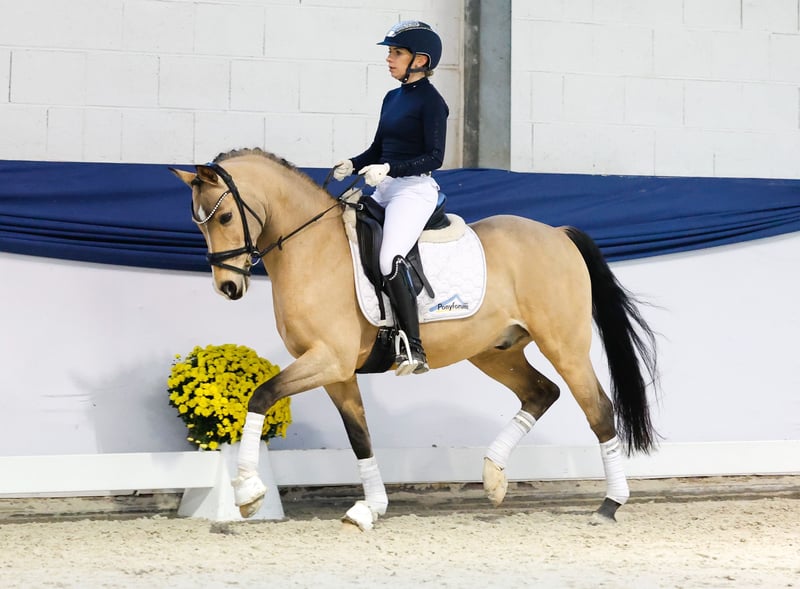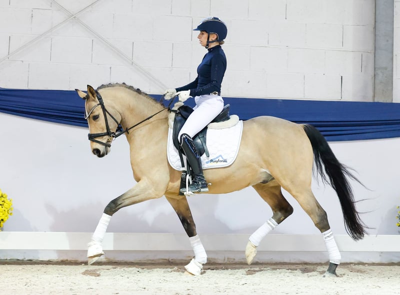 In unserer Kollektion stehen streng selektierte Reitponys f�r alle Anspr�che: Ausbildungs-, Zucht- und Kinderponys Hier gelangen Sie zur Gesamtkollektion: https://ponyforum.auction platziert in Dressurprüfung Klasse L, siegreich in Dressurprüfung Klasse A, platziert in Dressurprüfungen Klasse A, platziert in Dressurpferdeprüfungen Klasse A, siegreich und platziert in Reitpferdeprüfungen, Teilnehmer Bundeschampionat Der neunjährige Falbwallach Mr. Riös kann mit einem Scheckheft voller hochkarätiger Erfolge aufwarten: der ehemals gekörte Hengst war mehrfacher Teilnehmer des Bundeschampionats, hat in Aufbauprüfungen zahlreiche Siege und Platzierungen sammeln können und ist in Dressurprüfungen bis zur Klasse L erfolgreich. Seine Typstärke und Bewegungsgüte kommt nicht von ungefähr: sein Vater FS Mr. Right ist in der Szene ein absoluter Begriff und seine Mutter ist eine Vollschwester des Elitehengstes Kennedy, der selbst bis zur schweren Klasse ausgebildet war. Mit seinen beeindruckenden Bewegungsmöglichkeiten weiß sich Mr. Riös perfekt in Szene zu setzen! Er beherrscht das FEI-Programm sicher und kann direkt erfolgsversprechend in dieser Tour eingesetzt werden. Mit seiner Besitzerin war er im letzten Jahr hauptsächlich in Dressurprüfungen der Klasse A unterwegs, er war der perfekte Partner für seine junge Freundin und hat ihr alle Ängste genommen.