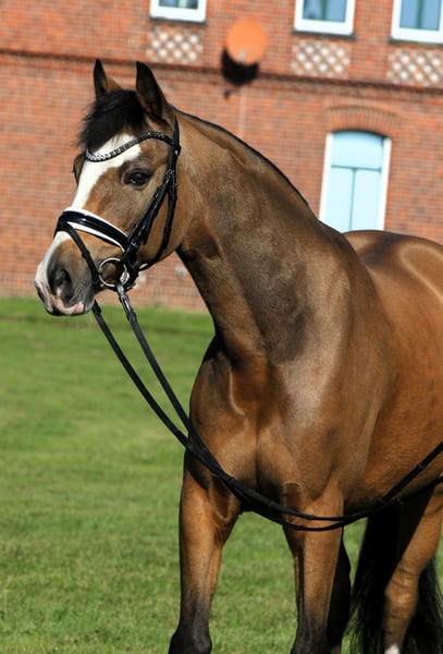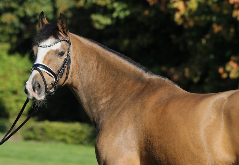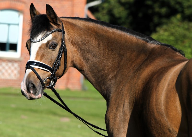 With a heavy heart, we are offering this striking, colorful chestnut gelding for sale on behalf of the family. Diamond Star was licensed as a young stallion and even awarded premium stallion status, which further underscores his quality. As a young horse, he was highly successful in riding horse competitions and even placed as a finalist at the Bundeschampionate. Presented by a young rider, he was victorious in Dressage Pony A and L classes and qualified once again for the Bundeschampionate. Since then, he has achieved several wins and placings up to class L. Diamond Star is a true teacher and is very easy to ride, bringing a remarkable basic quality. Not spooky or tense, but rather a pony that responds well and is easy to "push forward." He is waiting for a new family where he can start fresh. Currently, he is clinically and radiologically sound (O.B.). Further informative videos are available upon request. The gelding is well-suited for breeding! Also suitable for a small adult rider. He is uncomplicated on paddock, pasture, lunging, and in the terrain. Price at the lower end of the indicated category.