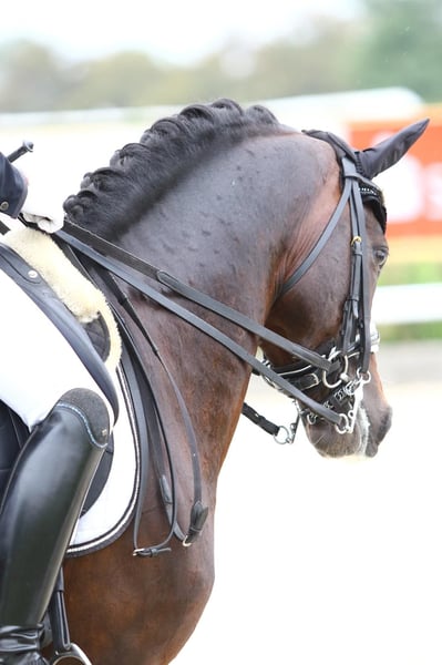 Nancovino E is a very impressive and exceptional German Riding Pony, who always knows how to impress with his three well-developed and distinctly pronounced basic gaits, as well as his appearance and beautiful charisma. In training and at horse performance tests, he is always motivated and cooperative, consistently striving to do everything right. He is easy to ride and is currently being ridden by a 13-year-old girl, presenting himself as a safe and reliable teacher. Nancovino is equipped with good self-confidence and, with appropriate knowledge in handling stallions, shows himself to be a reliable and always manageable partner in daily interactions and while riding. He brings a wealth of competition experience and can boast a variety of placements and victories in dressage up to the S** level and in show jumping up to the A level. This riding pony continually captivates judges and spectators alike and knows how to inspire. As he is very reliable in his lessons and correctly responds to the rider's aids, he is a great sport partner for any talented and empathetic rider. He is also a true pathway to a successful riding career for ambitious, sport-oriented riders. Currently, he is already showing good beginnings for piaffe and passage in training, indicating the real possibility of growing into the tasks of the 'highest class of dressage sport' with appropriate support. We want our very well-trained sport pony, friend, and partner to find a new beautiful home where he will continue to be loved, well-treated, ridden, and developed, so that he can show what he is capable of. Recent X-ray images are available and can be redone if necessary and by arrangement. Numerous videos can be accessed on Clipmyhorse and Rimondo. Additional videos can be sent upon request.