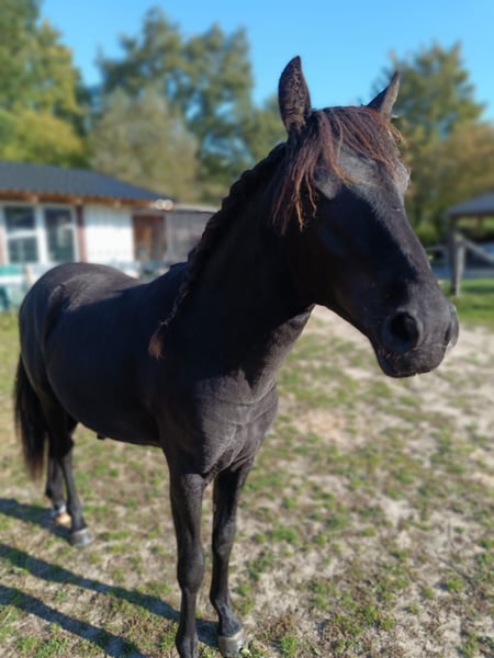 Dexter Ein Traumpony mit viel Behang und tollem Glanz. Vater unbekannt aber Etwas spanischen Flair trägt der kleine in sich. Mai 2024 geboren Derzeit 1,42cm Er ist das Perfekte spätere Kinder Pony! Super neugierig, schmusig und super schön. Er kennt das putzen. Geht brav auf den Anhänger und ist artig beim Schmied. Er wächst mit älteren Wallachen und einem weiteren jungenhengst in Robusthaltung auf und sieht den Stall nur in tiefen Winter. 3800€ VHB Bei Interesse meldet euch gerne :-)