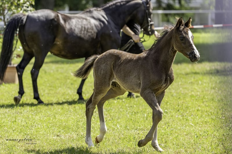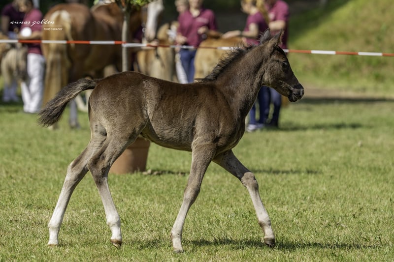For sale: German Riding Pony stallion foal – Championship foal, born on 28.04.2025 This foal is lovingly raised and is well-socialized. Darius is approachable and curious. By the time of transfer in October/November, he will have mastered the foal ABC. He was awarded as a Championship foal at the foal show. If you are interested or have any questions, please feel free to contact me. Viewings can be arranged by appointment.