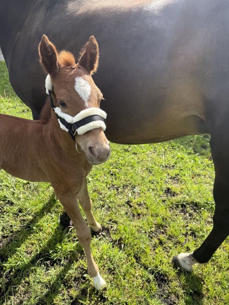 Destino‘s Don‘t worry be Happy, kurz um Happy Dieser wunderschöne, charmante, nervenstarke und Neugierde junge Mann in dunklere Fuchsjacke darf ab Dezember ausziehen und seine neuen Besitzer um den Finger wickeln. Er ist absolut Menschen bezogen und kennt alles was ein kleiner Ponymann kennen sollte. Am 19.07.25 waren wir mit ihm in Groß Viegeln, wo er als Elite Fohlen prämiert wurde. Video gerne auf Anfrage. Geboren am 27.05.2025 Abstammung: V.: Elitehengst Destino R MV.: Classic Dancer lll Weitere Abstammung, bitte den Bild entnehmen. Bei weiteren Fragen gerne schreiben