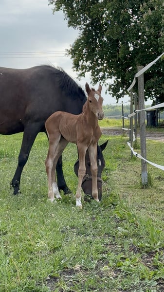 Destino's Don't Worry Be Happy, short for Happy This beautiful, charming, strong-minded, and curious young man in a dark chestnut coat will be ready to move to his new owners in December and charm them completely. He is absolutely people-oriented and knows everything a little pony should know. On July 19, 2025, we were in Groß Viegeln with him, where he was awarded as an Elite Foal. Videos available upon request. Born on May 27, 2025 Pedigree: Sire: Elite Stallion Destino R Dam's Sire: Classic Dancer III For further pedigree details, please refer to the image. If you have any further questions, feel free to write.