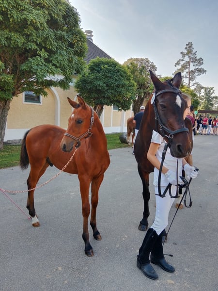 Te koop is deze buitengewoon mooie en expressieve kleine man Da Vinci. Zijn top exterieur en gangmechaniek openen hem de deuren naar de grote sport. Zijn broers en zussen en zijn moeder zijn allemaal van pony formaat en onderscheiden zich door een top karakter. Zijn grote broer (Calimero le Cadeau) is een goedgekeurde dekhengst en zijn moeder is een premie merrie. Zijn vader Double Jackpot is in Duitsland voor de fokkerij aangeworven. Bij het OÖ Fohlenchampionat ontving hij een geweldige waardering van 8,2 en kwalificeerde hij zich voor het Bundeschampionat. Kampioen veulen van de rijpony hengsten bij het Bundes Championat 2025! Bij het Bundeschampionat behaalde hij de overwinning met een waardering van 8,6 (Type 9!). Hij zou dus een waardige hengstanwärter zijn. Wij wensen voor hem liefdevolle en stimulerende handen die zijn aanleg weten te waarderen.