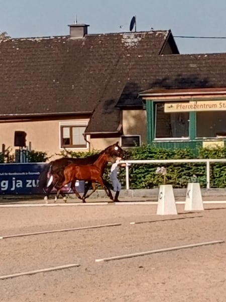 In vendita c'è questo straordinariamente bello e espressivo piccolo uomo Da Vinci. Il suo eccellente esteriore e meccanica del passo gli aprono le porte al grande sport. I suoi fratelli e sua madre sono tutti di taglia pony e si distinguono per un carattere eccezionale. Suo fratello maggiore (Calimero le Cadeau) è un stallone da riproduzione approvato e sua madre è una fattrice premiata. Suo padre Double Jackpot è stato selezionato in Germania per la riproduzione. Al Campionato dei Puledri dell'OÖ ha ricevuto un ottimo punteggio di 8,2 e si è qualificato per il Bundeschampionat. Puledro vincitore degli stalloni di pony da monta al Campionato Federale 2025! Al Bundeschampionat ha ottenuto la vittoria con un punteggio di 8,6 (Tipo 9!). Sarebbe quindi un degno candidato per stallone. Desideriamo per lui mani amorevoli e stimolanti che sappiano apprezzare le sue predisposizioni.