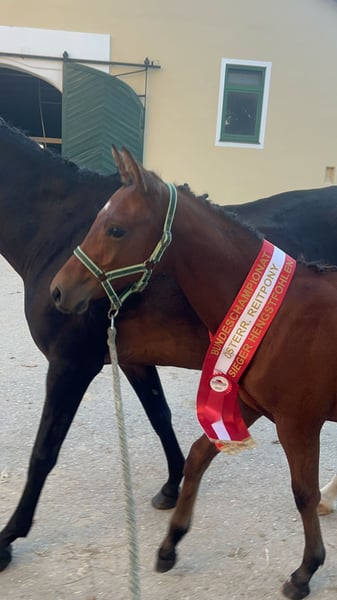 Zu verkaufen ist dieser außerordentlich hübsche und ausdrucksstarke kleine Mann Da Vinci. Sein top Exterieur und Gangmechanik öffnen ihm Tür und Tor zum großen Sport. Seine Geschwister und seine Mutter sind alle im Pony Endmaß und zeichnen sich durch einen top Charakter aus. Sein großer Bruder (Calimero le Cadeau) ist gekörter Deckhengst und seine Mutter Prämien Stute. Sein Vater Double Jackpot wurde in Deutschland für die Zucht angeworben. Beim OÖ Fohlenchampionat erhielt er die tolle Wertnote von 8.2 und qualifizierte sich für das Bundeschampionat. Siegerfohlen der Reitpony Hengste beim Bundes Championat 2025 ! Beim Bundeschampionat holte er sich den Sieg mit einer Wertnote von 8,6 ( Typ 9 ! ). Er wäre also ein würdiger Hengstanwärter. Wir wünschen uns für ihn liebevolle und fördernde Hände, die seine Veranlagungen zu schätzen wissen.